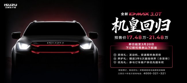 机皇归来,实力全面进化!全新D-MAX 3.0T火热预售中
