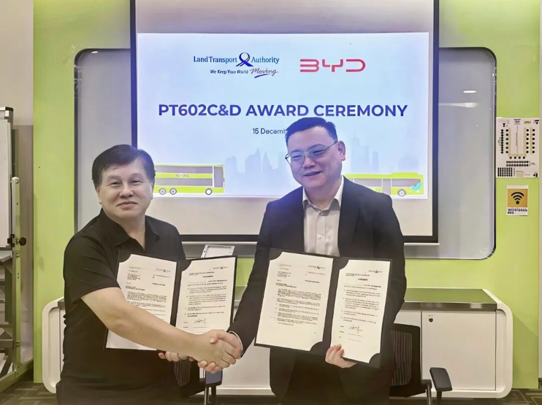 12月15日,比亚迪成功斩获新加坡陆路交通管理局(简称LTA)210台电动巴士订单,合同总额超1.05亿新加坡元(约5.75亿人民币)。此前,比亚迪在当地已运营超300台大巴,以超60%的市占率稳居行业第一,用技术实力、产品可靠性和优质服务助力新加坡公共交通绿