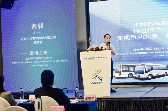 9月19日,在第22届中国-东盟博览会期间,“中国-东盟商用车产业交流会”于南宁K国际酒店举办,少林客车董事长刘毅受邀发表《数智赋能 创新领航——以数智化商用车解决方案激活市场新动能》主题演讲,深度分享少林客车在绿色交通领域的实践与愿景。会上,少林客车凭借卓越