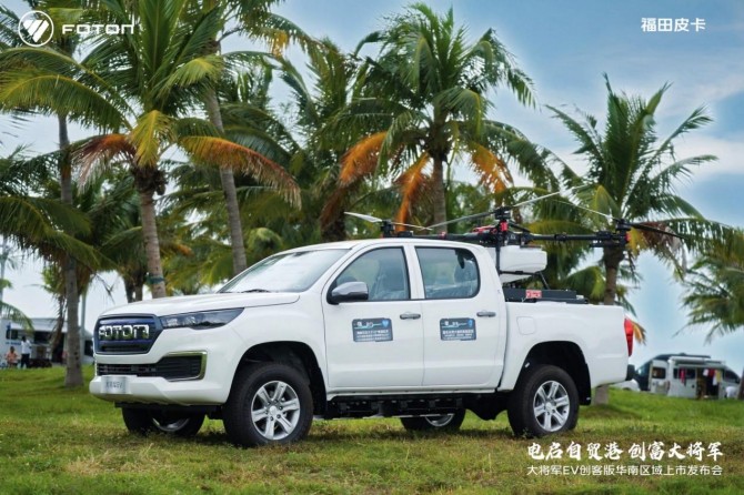 2025年双十一,“电启自贸港,创富大将军” 福田大将军EV创客版华南区域上市发布会在海南海花岛盛大启幕,超级纯电大皮卡重磅上市,售价为11.98万元起。