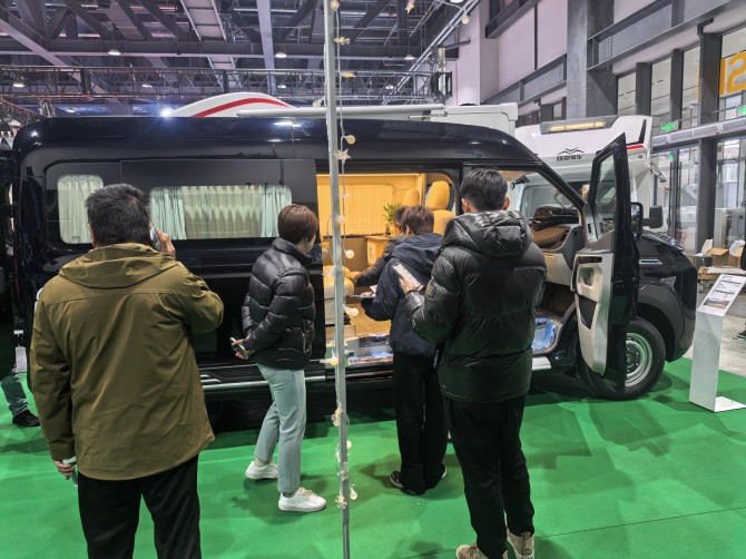 展会首日,中国重汽轻型汽车展台便成为全场焦点之一。全新宿营车的集体亮相吸引了大量观众驻足围观,展台内人流如潮,咨询洽谈者络绎不绝。不少观众第一时间了解车型配置,坐进车内亲身感受,现场气氛热烈。