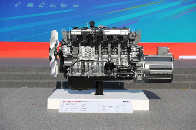 全新WP17T甲醇增程动力产品,最大功率可达 650Ps,最大扭矩2900N·m。作为行业内唯一可实现长时间无故障稳定运行的甲醇动力机型,该产品依托增程器发电效率最优解设计与整车智能化控制策略,实现燃油经济性的跨越式提升,每年可帮助客户节省燃料成本近60万元,为行业绿色低碳转型提供高性价比解决方案。
