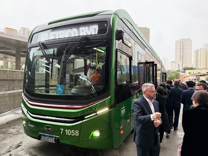 当地时间2025年10月8日,比亚迪董事长兼总裁王传福在巴西圣保罗现场考察了正在进行测试的地铁17号黄金线比亚迪云轨项目,并在同日向圣保罗市市长Ricardo Nunes正式交付首台22米长、搭载比亚迪刀片电池的纯电动铰接式大巴。圣保罗州州长Tarcísio de Freitas、比亚迪执行副总裁李柯、比亚迪集团多位高管与圣保罗地铁公司团队代表共同出席了这次活动。