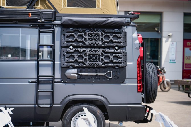 活动现场展示的得意8AT宿营车,最吸睛的莫过于其酷炫外观——加装的越野前后保险杠与侧踏板彰显力量感,侧边工具板可灵活搭载工具。车内保留2+3标准座椅布局,打通车顶并配备升顶帐篷,轻松满足多人出行的需求。