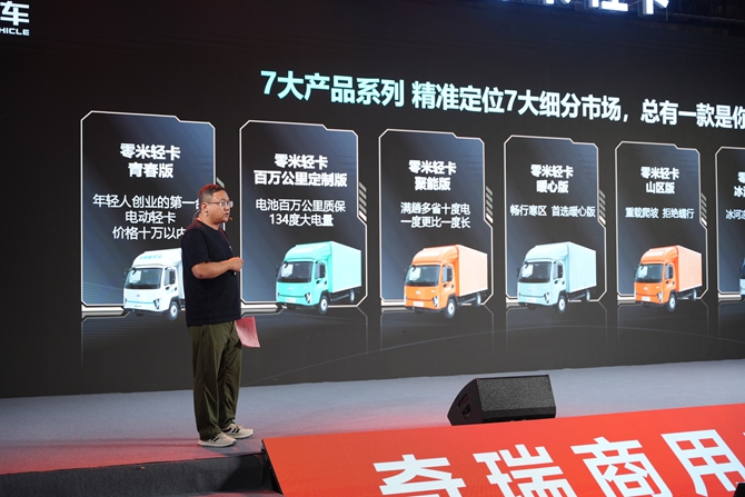 奇瑞商用车零米轻卡营销公司总经理朱和义表示:零米轻卡基于一年来对市场与用户的深度洞察交出又一答卷,针对城配重载、冷链、寒区、快递快运、高效物流五大场景,推出全新产品零米轻卡红蹄版,以"120度城配高效跑,一把到位"为核心价值,真正实现效率、耐力、速度与可靠性的全面融合。