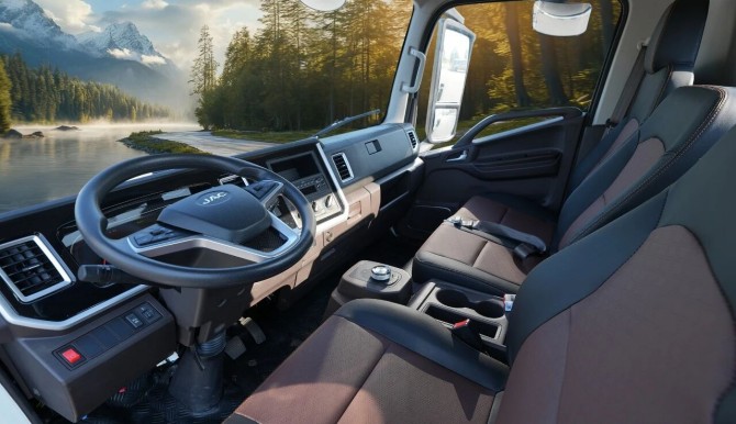 多数卡友每天开车10小时以上,驾驶室是他们移动的“家”,其舒适性与便利性直接关系到工作状态。江淮新能源轻卡EV9在这方面做出了显著提升,2090mm的超宽驾驶室提供了宽敞空间,可选气囊座椅能有效缓解驾驶疲劳,超过30处的精细化储物空间则让单据、水杯、手机各就各位。