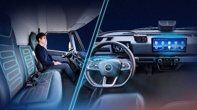 同时,2C双枪超充技术,充电10分钟续航200公里,正在重塑物流作业节奏。绿通运输的刘师傅表示:“以往中途充电至少耽误一个多小时,现在一根烟的功夫就能快速补能,接单更从容。”更关键的是,其行业首创多源热泵智能温控系统,在冬季制热时能耗较传统方案降低超40%,解决了“冬季续航腰斩”的痛点。