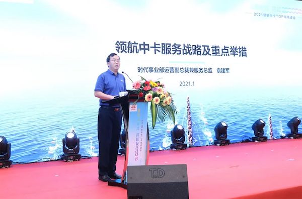 领航中卡新业务发展战略对服务提出了新的要求,会上,时代事业部运营副总裁、服务总监袁建军就领航中卡服务能力、特殊场景服务支撑能力、配件保障、服务响应等方面进行评估,对领航中卡服务战略及实施策略进行了解读:“以客户体验为中心,从管理和技术的专业性出发,构建服务和配件体系能力及平台,运用互联网技术,贯通业务流程,实现车联融合,为客户提供高效、专业、超值的服务,提升服务核心竞争力,打造中卡国六服务第一品牌,实现服务引领,助推新时代50万战略目标达成。”