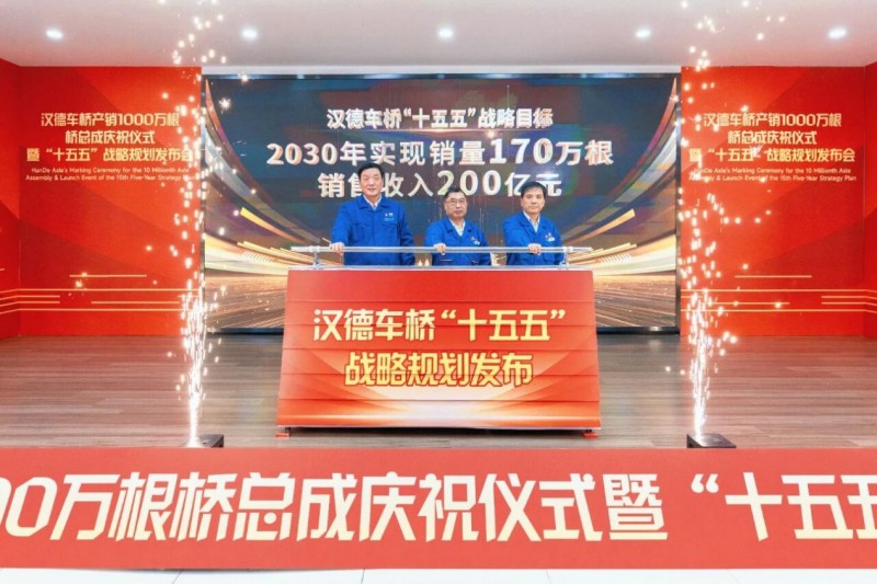 2025年11月15日,汉德车桥举行桥总成产销突破1000万根庆祝仪式暨“十五五”战略规划发布会。这一历史性时刻,既是企业二十三年深耕车桥领域的厚积薄发,更是迈向“国际一流全系列轮式车辆车桥系统提供商”愿景的新起点。全体汉德人将以千万根桥总成为基石,振奋精神全力实现新突破。