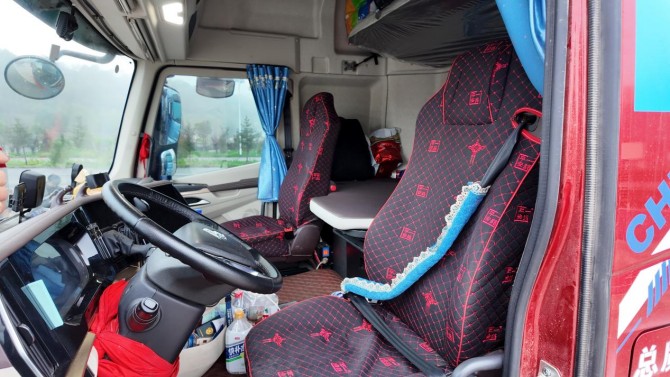 此外,乘龙HK LNG牵引车的座舱为干线运输卡友打造了舒适的驾乘空间。高顶平地板设计带来宽敞的环境,1.8米高的驾乘者直立行走、转身取物无局促感;1100毫米超宽软卧和气囊减震座椅能有效舒缓驾驶疲惫。车内更有24处储物格,可分类收纳衣物、干粮、工具等,保持座舱整洁;5A健康座舱能有效过滤外界粉尘,确保车内空气清新。