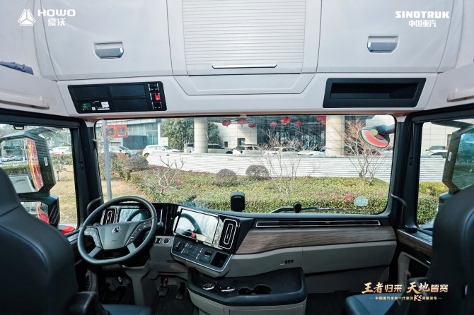 何为真正的舒阔?全新一代豪沃KS以精准至毫米的匠心回应——大空间,容万物,揽巨富!其驾驶室一切细节均打造围绕卡友所需,内部纵深2450mm,让每一次转身与舒展都从容不迫;2250mm的超宽全景视野,告别盲区束缚,驾驶休憩更通透;配合2150mm的层高,直立行走不弓腰,取物、整理被褥毫无局促感。不仅如此,驾驶室搭载环境智能调控,可自动调节座舱温度、风量,精准适配不同工况与天气,时刻保持舒适体感;全场景居家化智能设计,将智能便捷融入休憩、储物等每一个日常场景,满足卡友多样化生活需求,让驾驶室更有“家”的温暖。